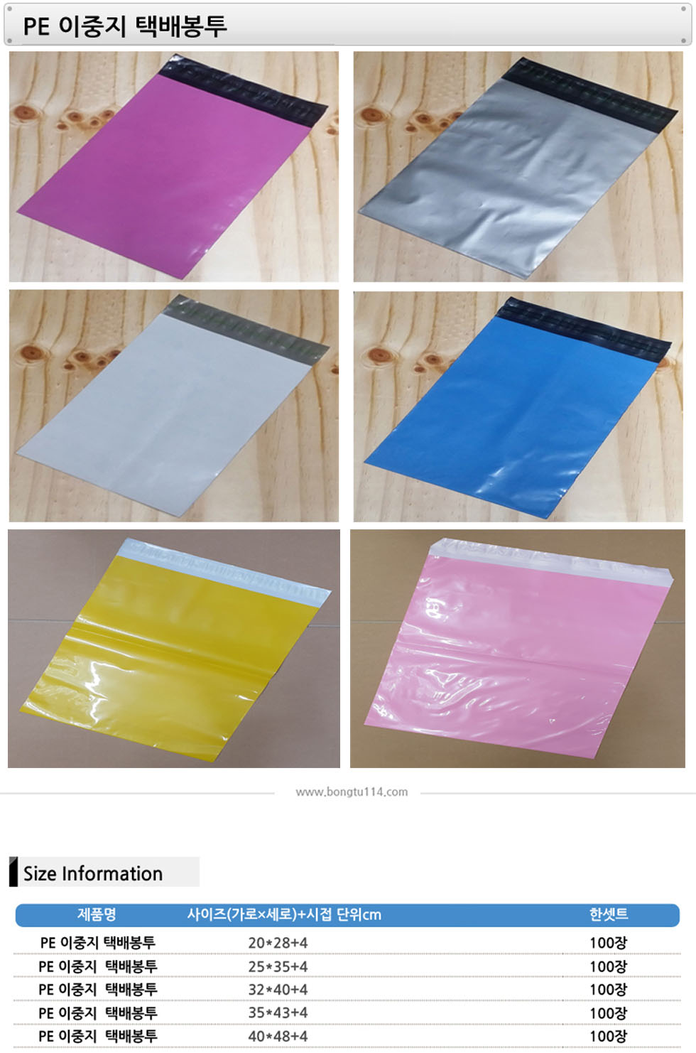 이중지택배봉투 머스타드옐로우 (속-백색) 32*40+4 (1묶음 100장)