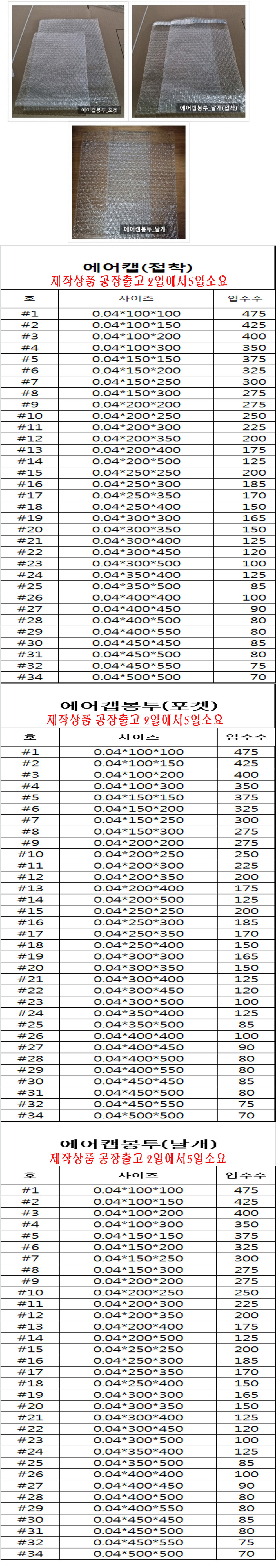 에어캡 포켓봉투 두께(0.04*300*350)제작상품 공장출고 2-5일 소요(1박스150장)