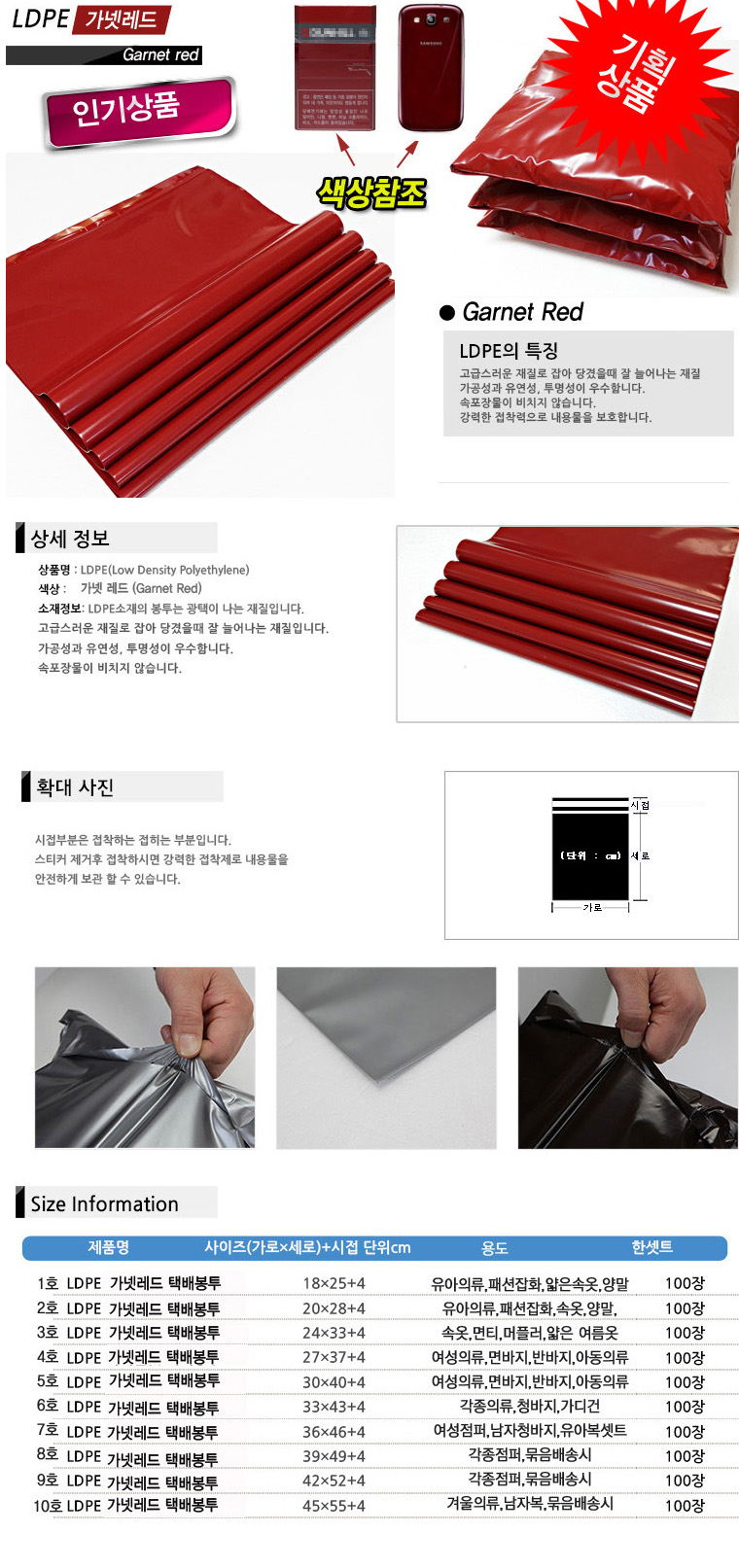택배봉투/PE가넷레드36*46+4(한묶음100장)